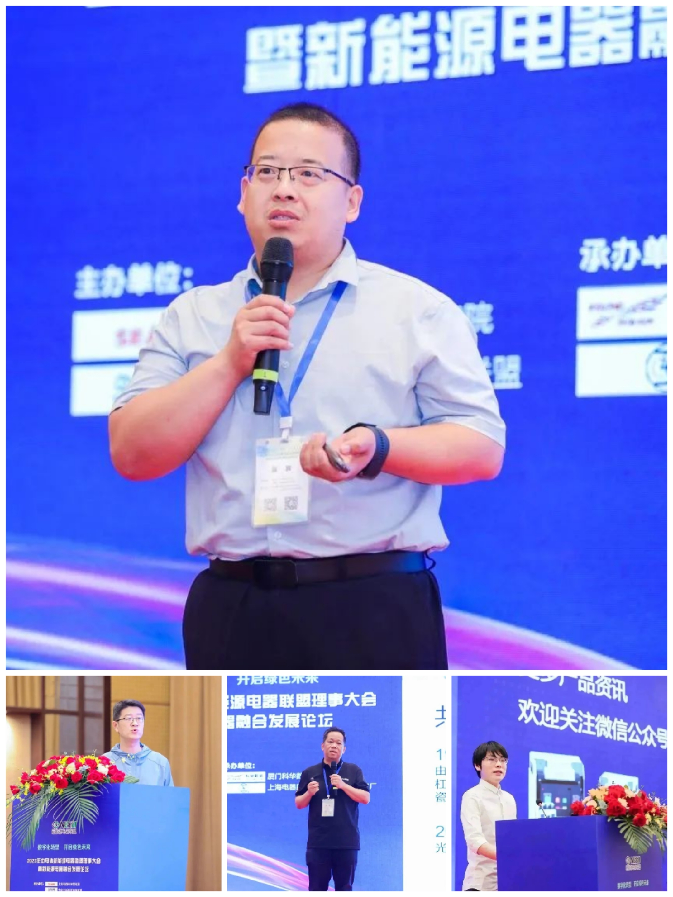 一批勇于創(chuàng)新、技術(shù)領(lǐng)先的新能源和電器精英企業(yè)的專家也向會議分享了他們長期研究取得的成果,分別有:廈門科華數(shù)能科技有限公司技術(shù)中心總經(jīng)理曾春保做的“創(chuàng)新儲能技術(shù)助力新型儲能規(guī)?;瘧?yīng)用”報告;上海電器股份有限公司人民電器廠低壓新能源產(chǎn)品資深工程師顧之聰做的“上聯(lián)智能電器助力‘雙碳’戰(zhàn)略”報告;德力西電氣有限公司產(chǎn)品研發(fā)部高級專家白建社做的“新型電力系統(tǒng)下的低壓電器行業(yè)低碳發(fā)展”報告;施耐德電氣(中國)有限公司低壓市場部新能源行業(yè)架構(gòu)師唐文清做的“創(chuàng)新引領(lǐng)、 賦能新型電力系統(tǒng)建設(shè)”報告;溯高美索克曼電氣(上海)有限公司行業(yè)解決方案經(jīng)理劉駿做的“電化學(xué)儲能系統(tǒng)安全隔離與能效監(jiān)測”報告;陽光電源股份有限公司南京研究所所長夏彥輝做的“AI賦能高比例新能源消納應(yīng)用場景分享及展望”報告;浙江天正電氣股份有限公司市場部總監(jiān)冰峰做的“光儲行業(yè)低壓電氣系統(tǒng)解決方案”等;首瑞(天津)電氣設(shè)備有限公司新能源行業(yè)總監(jiān)張書瑞做的“反向隧道式無飛弧真安型斷路器”等報告。